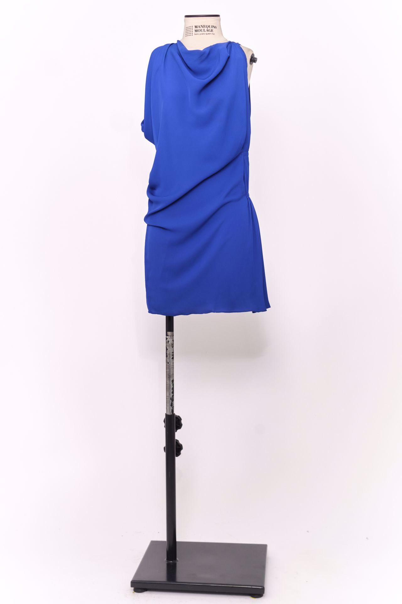 -TAMANHO:P -MARCA: LANVIN -VESTIDO AZUL ASSIMETRICO LEVE SEM MANGA