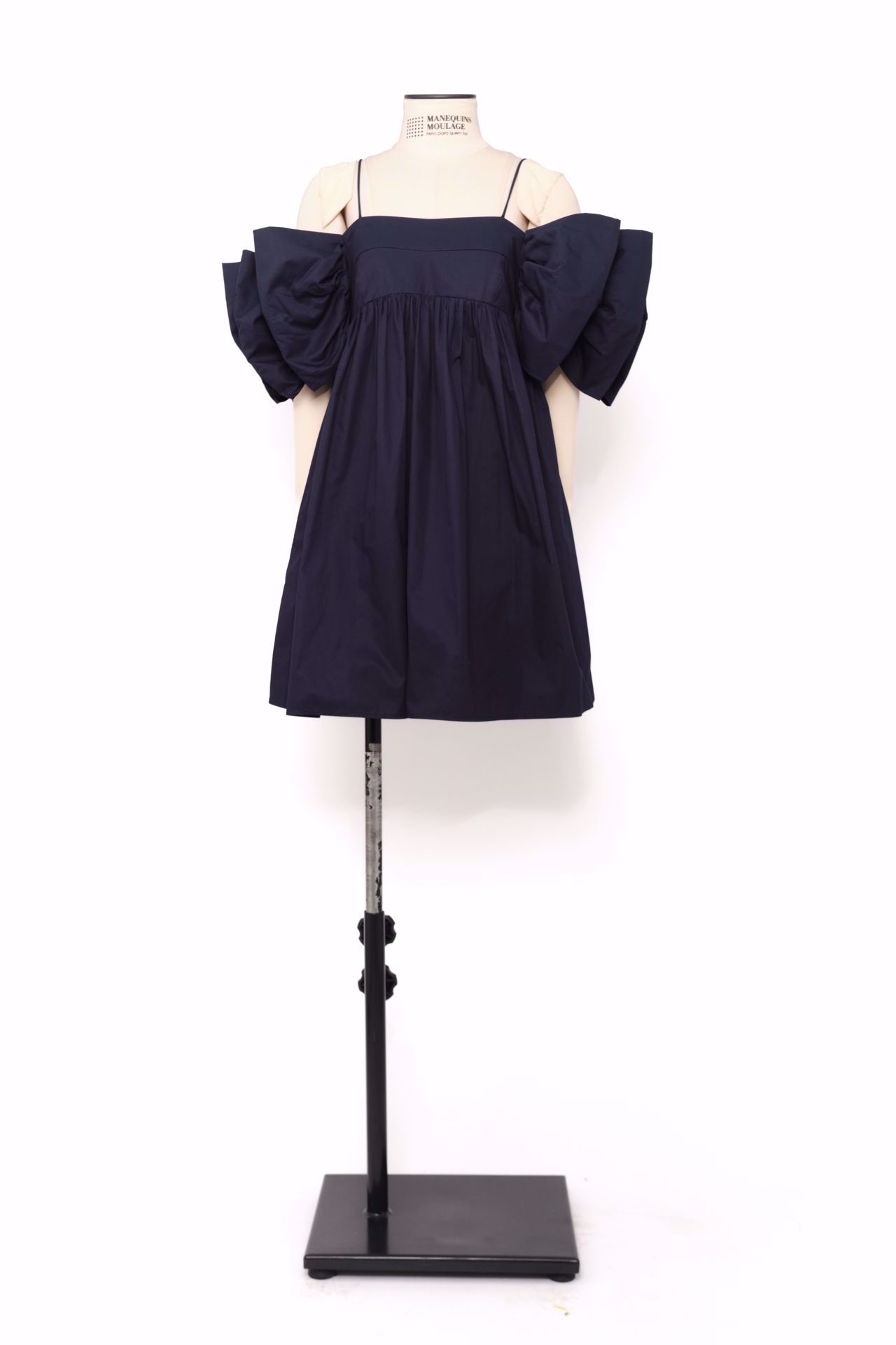 -TAMANHO: P -MARCA:MEIMEIJ -VESTIDO CURTO FRANZIDO AZUL MARINHO ALÇA FINA MANGA CIGANINHA BUFANTE