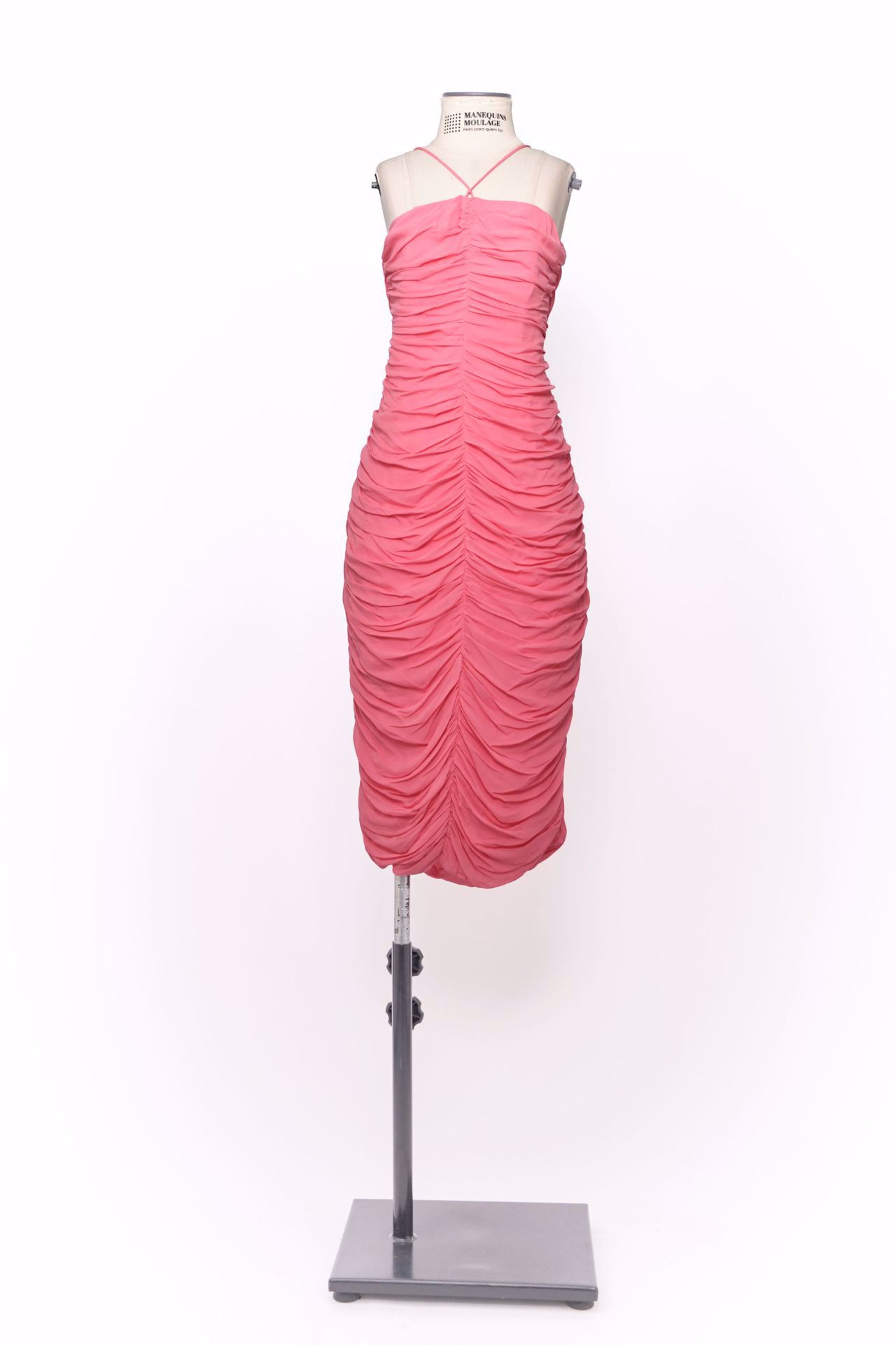 VESTIDO MIDI ROSA DRAPEADO ALÇA FINA ZIPER LATERAL KIKA SIMONSEN